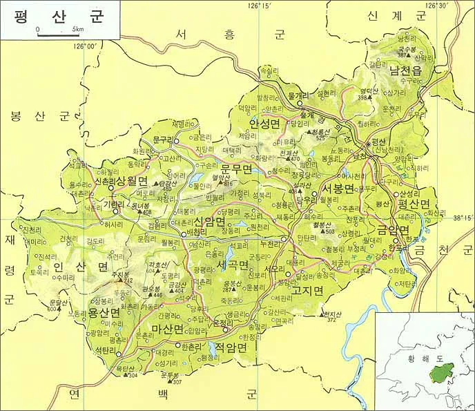 지금 행정구역은 황해북도 평산군 평산읍이다.